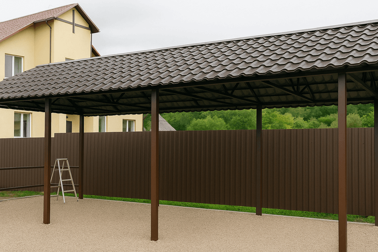 Изготовление навесов требует точного подхода к расчетам, подбору материалов и соблюдению строительных норм. Мы предлагаем проведение полного цикла работ — от ориентировочного расчета до монтажа навеса на участке.