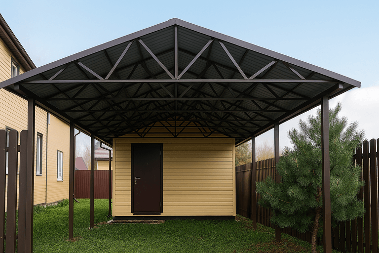 Существует множество вариантов и видов двухскатных навесов — от простых конструкций до архитектурно сложных решений. Мы выполняем строительство навесов с учетом всех технических особенностей, включая снеговые и ветровые нагрузки. Навес под двухскатную крышу — это не только функциональность, но и долгий срок службы.