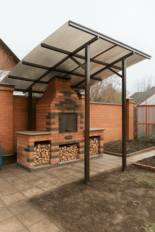 - Тип конструкции: навес над мангальной зоной может быть открытым, частично закрытым или полностью обустроенным.